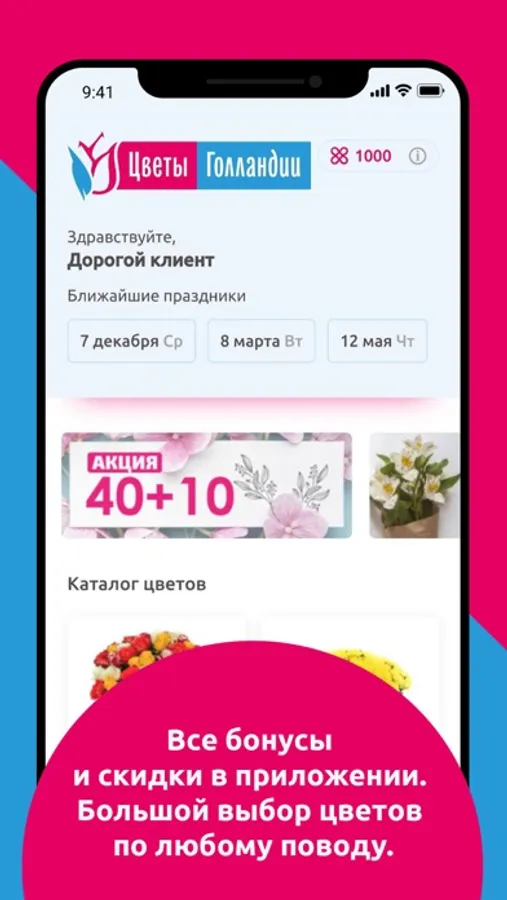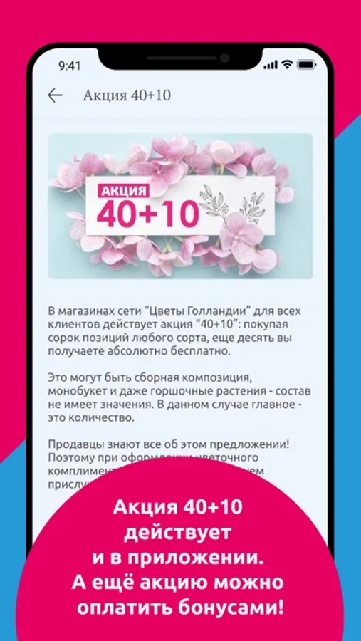 В магазинах работают профессиональные флористы, которые помогут подобрать букет к любому событию. Вы можете самостоятельно выбрать высоту (от 35 до 80 см) количество цветов, цвет, и тип упаковки. Если же Вы хотите подобрать уже готовый набор – в приложении есть широкий ассортимент из часто заказываемых экземпляров.