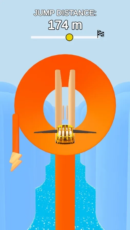 - Race down the ramp and collect as many rockets and wings as you can.
