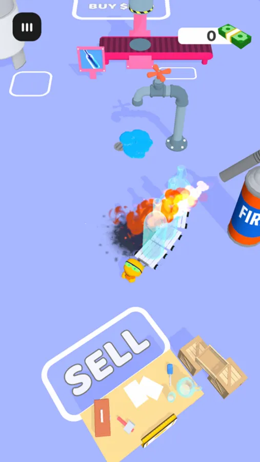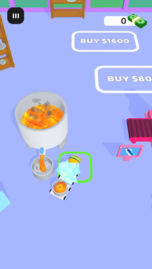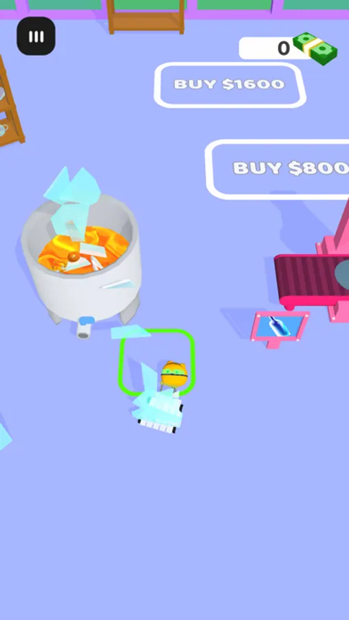 Get ready to be a glassmaker! Break the glass sheets and melt them. Once melted, carry it to the pressing machines where they will be formed into beautiful glass pieces! Sell them for money and upgrade your workshop!