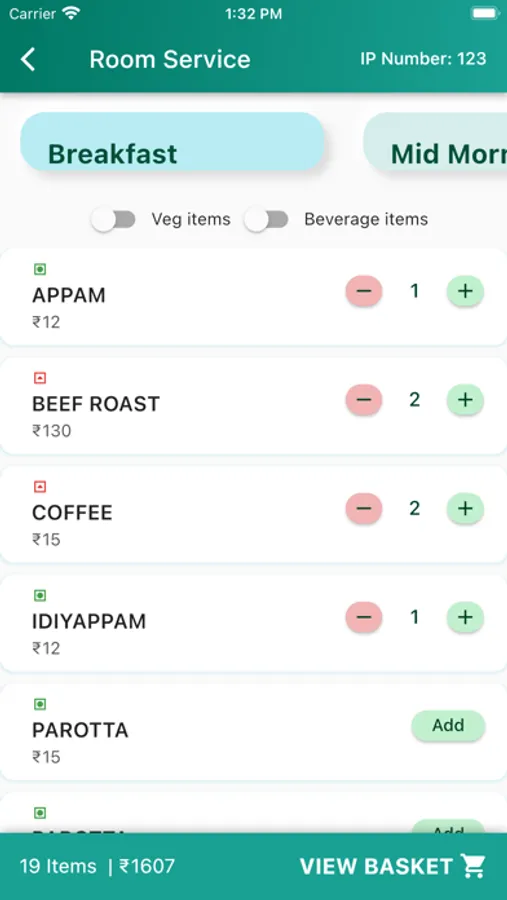 - Filters for veg and beverages items