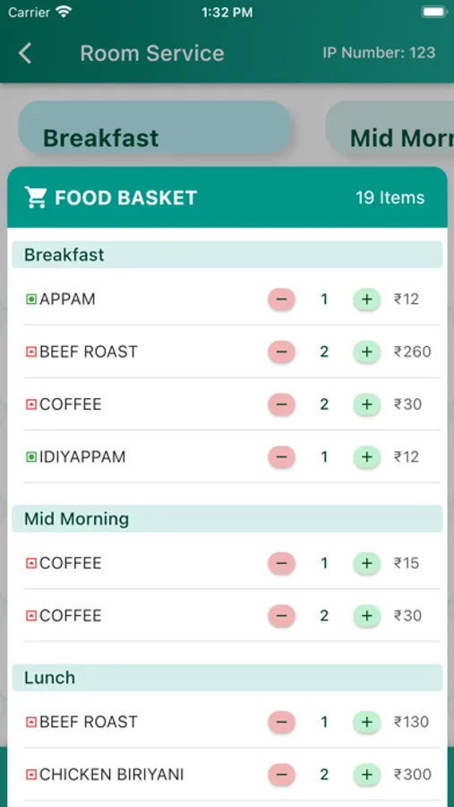 - Place an order from the 'Food basket'