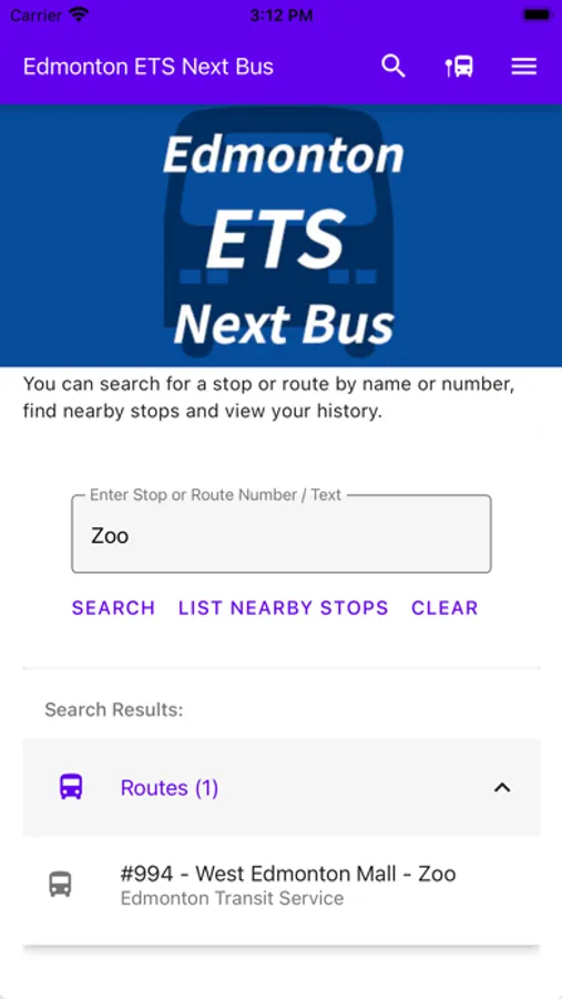You can also search your stop number or route name in the home screen or using the Search button.