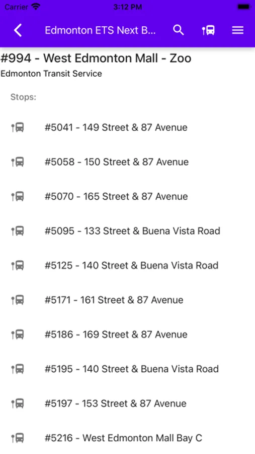 The Edmonton ETS Next Bus App will list all busses at a stop including when they are arriving and where they are going.