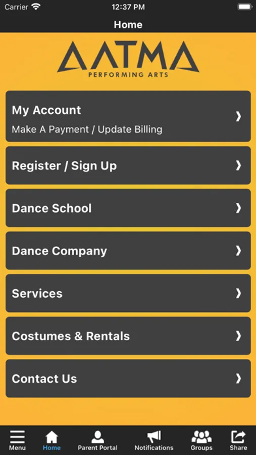 The AATMA Performing Arts app allows you to manage your account with ease, register for classes, parties and special events. You'll also receive important notifications about class changes, closings, registration openings, special announcements, and upcoming events.