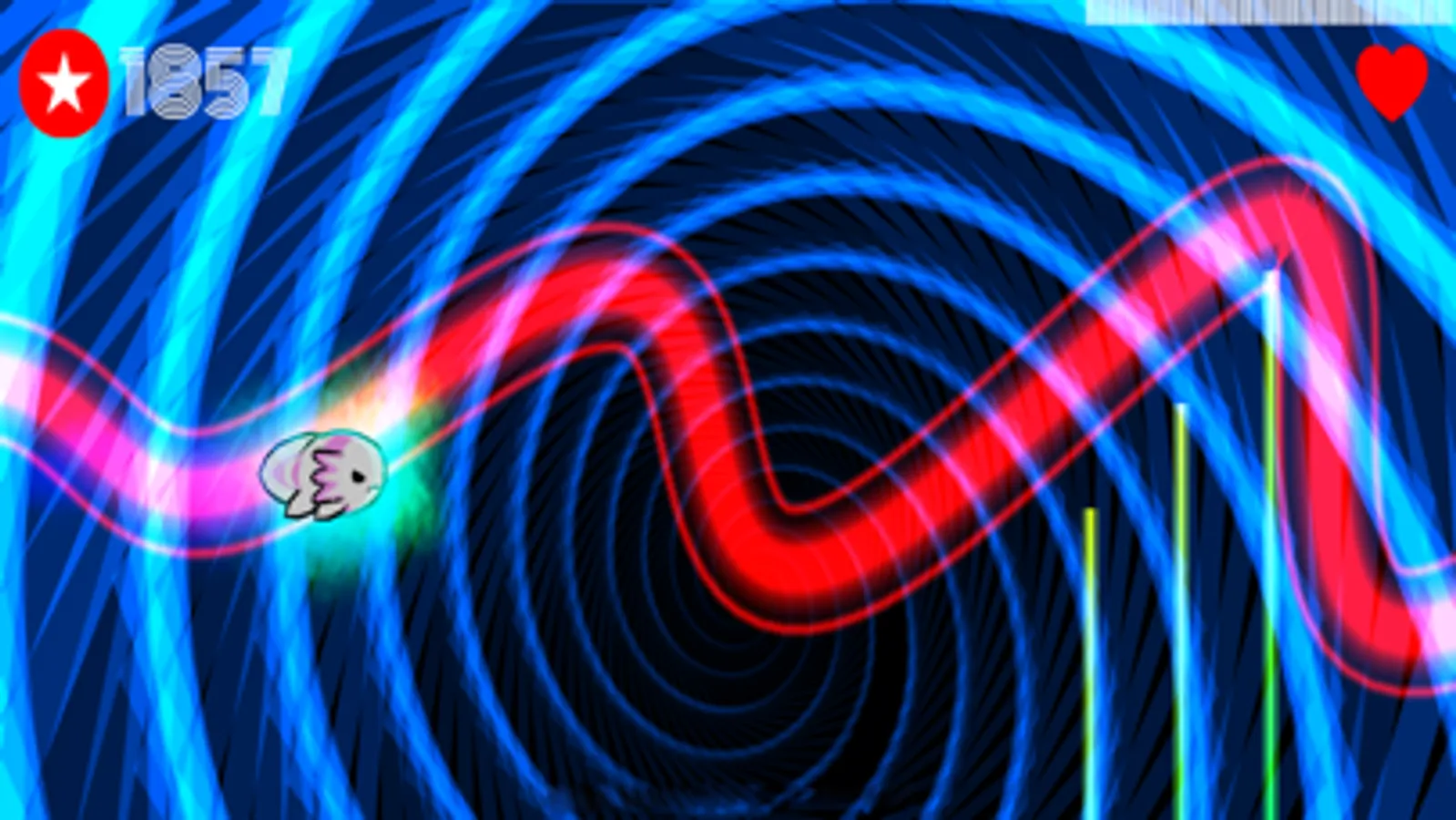 Help the Mexican salamander Axolotl swim through the river of consciousness, avoiding the deadly hazards while eating candy to earn points. Different psychedelic power-ups will make your task easier (and occasionally harder), by giving you superhuman powers (super-salamander, actually), significantly changing how the game is played and freeing Axolotl from the boundaries of reality. You will not believe what some of those power-ups do.