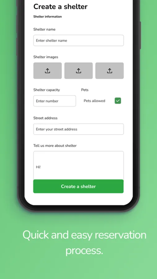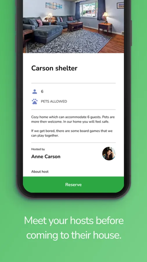Three step reservation makes it quick and easy for you to find a shelter that's perfect for you and your family. It makes it possible for you to meet the hosts before you enter their home.
