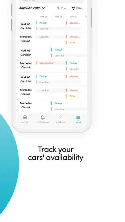 The app facilitates the management of the agencies by offering a rich data-base of the car fleet of every rental agency. The database allows app users to designate the car according to aspired characteristics through smart filters. This feature centralizes the required information and gains agencies time and effort.