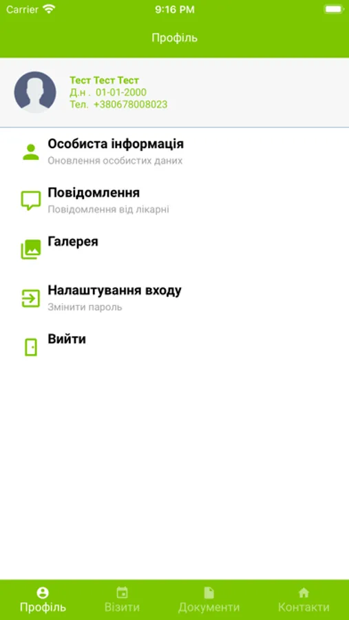 Особистий кабінет паціентів медичного центру Лелека-UP