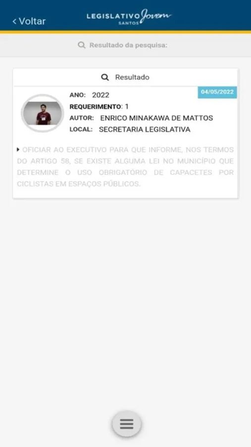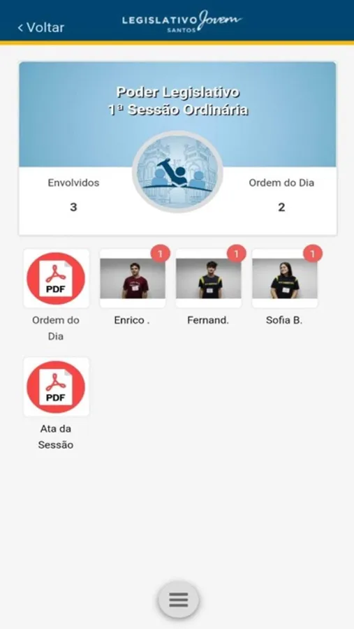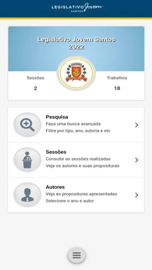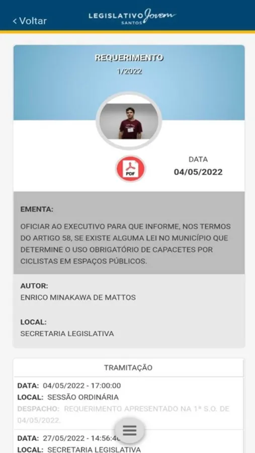 Aplicativo de consulta dos trabalhos apresentados e andamento do processo legislativo do projeto Legislativo Jovem com opção de visualização da tramitação e imagens dos documentos no formato PDF para consulta em tempo real.