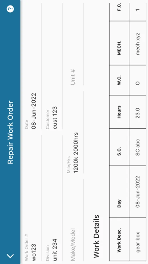 This App is the mechanic's tool to view which vehicles are due for servicing, write up work orders, and view and clear DTCs directly from a tablet.
