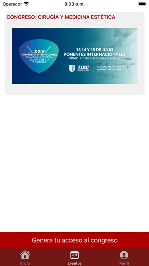 La aplicación oficial de la Universidad del Conde te permitirá revisar tu perfil, consultar los eventos disponibles por parte de la universidad, y te brindará un QR para accesos a congresos.