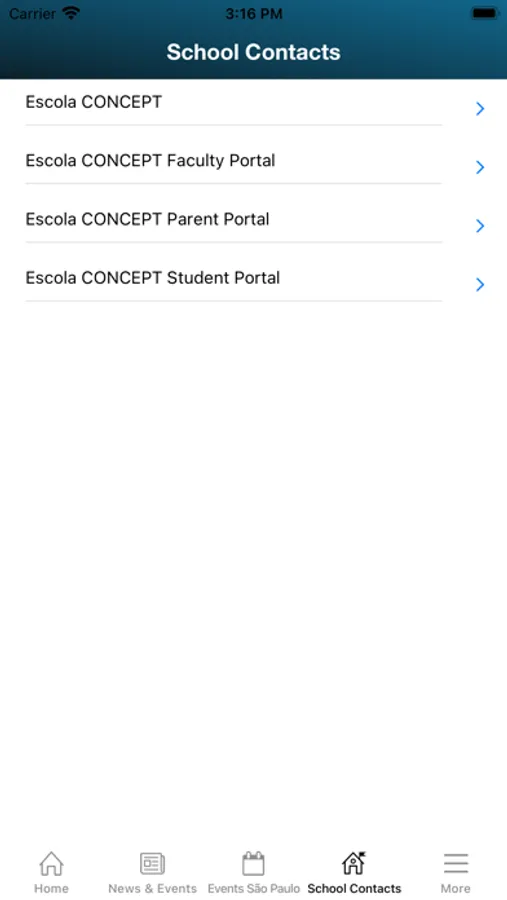 The information presented in the Escola Concept app is drawn from the same source as the Escola Concept Family Portal OneHUB. Privacy controls restrict sensitive information only to authorized people.