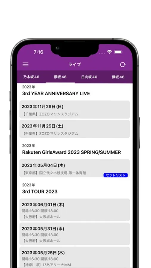 ライブ情報、影ナレやセットリストを表示