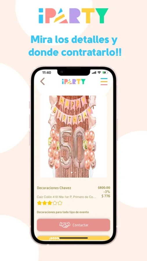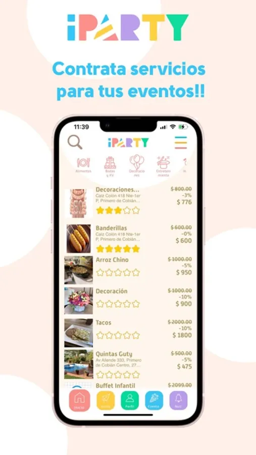 Con nuestra app podrás llevar el registro de tus eventos, podrás buscar proveedores en un rango de distancia y categoría, puedes generar tus eventos y contactar proveedores para él mismo. Podrás convertirte en proveedor y subir tus publicaciones para que los usuarios te puedan contactar para que les puedan apoyar en su evento.