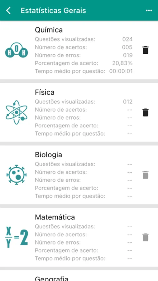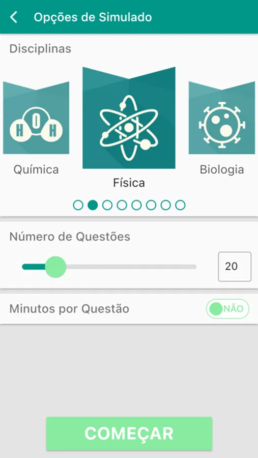 Com uma interface prática e moderna, você vai poder testar seus conhecimentos em mais de 10.000 questões, dos mais variados temas dentro das disciplinas de Química, Fìsica, Biologia, Matemática, Geografia e História.