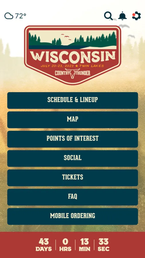 The official app for Country Thunder Wisconsin 2023. The Country Wisconsin app is your source for all the latest festival information. See who is playing when, find food options, and information on all of our awesome vendors. Maps, FAQs, and more are included.