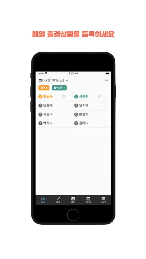 1. 출결사항: 출석, 결석, 출석인정 상태 관리 및 통계