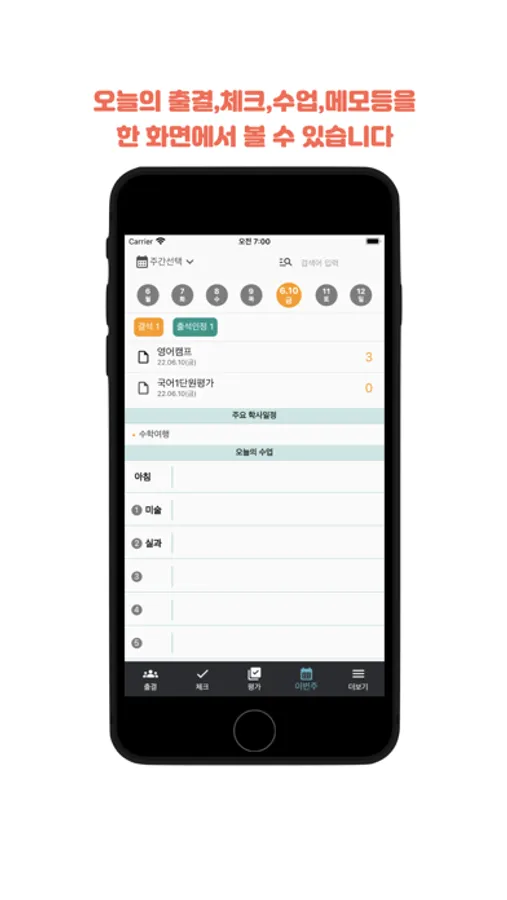 4. 이번주: 주간 출결,체크,평가, 수업,메모 관리 및 검색