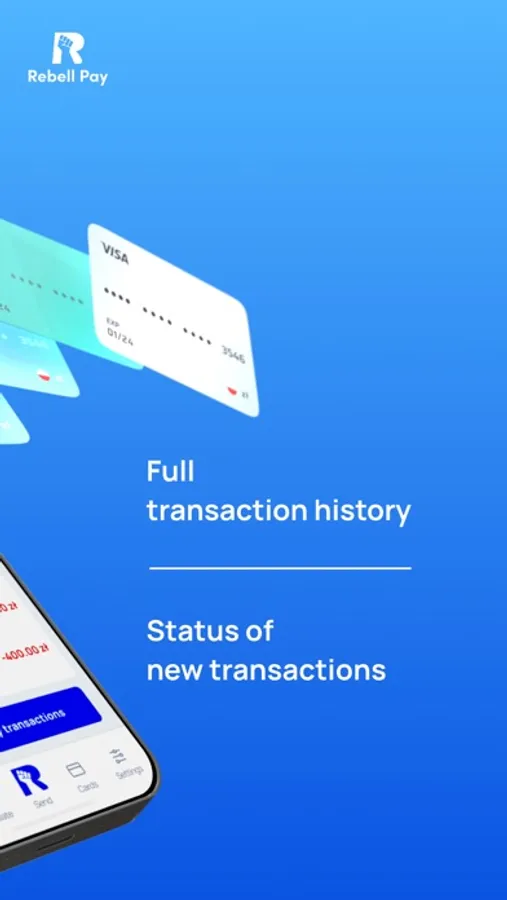 Rebell Pay keeps you updated with the status of your transactions and enables you to review the history of your outgoing and incoming payments. We offer comprehensive control over your financial activities.