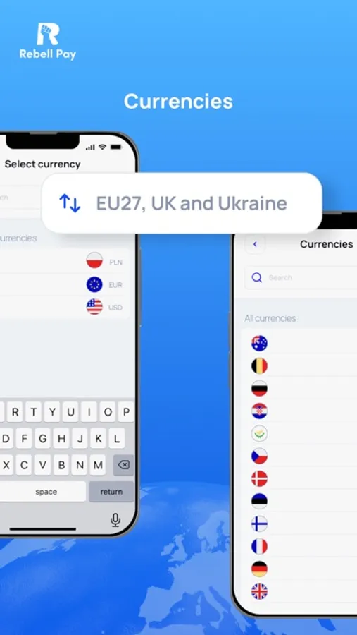 With Rebell Pay you can transfer freely between one of 16 currencies: