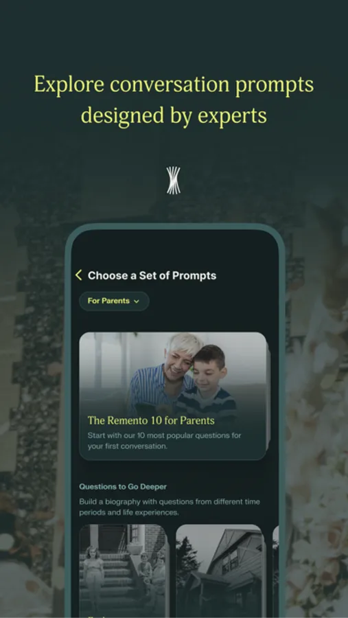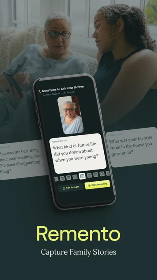 The Remento App is designed to inspire and record conversations that remind us we each have stories worth sharing.