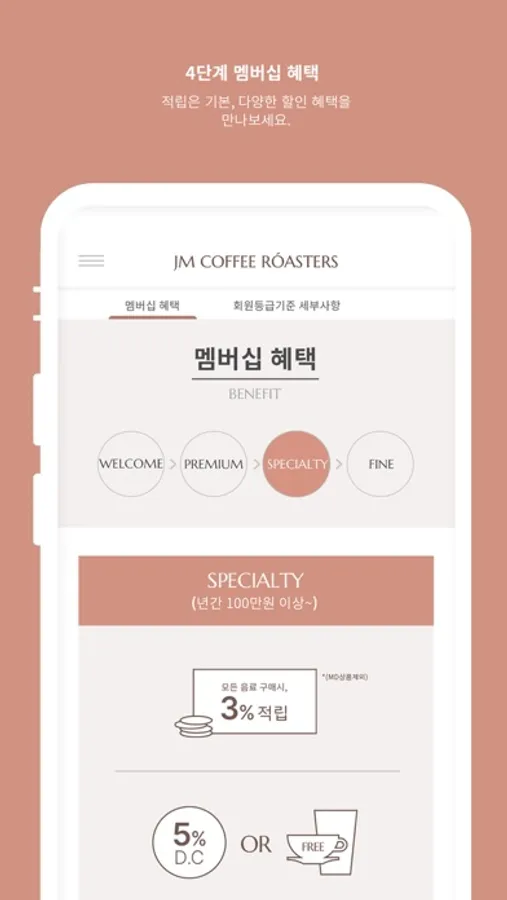 - 멤버십 혜택 : wellcome. premium. specialty. fine 등급에 따라 구분되는 다양한 혜택을 누리세요.