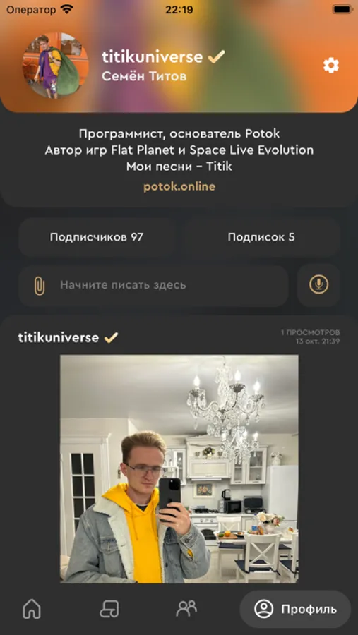 В Potok'е нет лишнего. Просто листай ленту, ищи крутые аккаунты, находи новые знакомства и связи, ищи с кем можешь поймать коннект