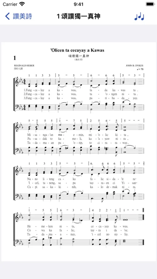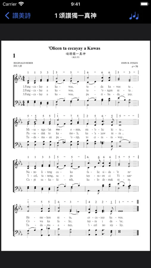 此 app 能顯示中文五線譜、中文簡譜、阿美語五線譜,並且支援音樂播放。