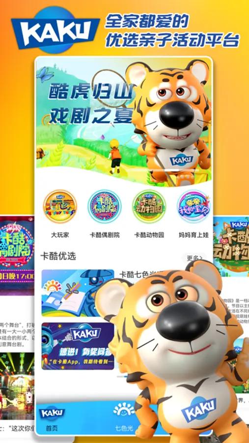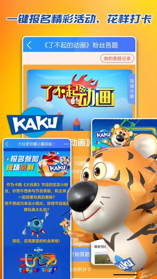 卡酷APP由北京广播电视台卡酷少儿×卫视重磅推出,是一款针对4-14岁儿童家长需求开发的成长陪伴类产品。卡酷APP基于官方优质资源,聚集节目互动、优质活动、素质教育、商城售卖与智能伙伴“酷虎”等功能,是家庭活动的优选专家与孩子的成长伙伴。【活动-直通卡酷】快来和卡酷一起玩儿!节目录制小嘉宾招募、动画大电影专场观影团、舞蹈展演……所有线上线下活动资讯,一键报名,满足你登上卡酷卫视的梦想!【育儿-文娱优选】衣、食、住、行、娱,卡酷携手全国亲子少儿产业资源,成为您家庭文娱生活的优选专家!科学知识、文学素养、安全演习等丰富的志愿、研学活动助力成长;卡酷主持人带队打卡博物馆、动物园等文旅胜地“破次元”趣味学习;教育专家“空降”互动,育儿焦虑个击破;还有萌娃秀、奖状墙,记录宝贝一点一滴的成就与进步……【七色光-素质教育】北京广播电视台唯一青少培训品牌卡酷七色光艺术1994年成立,提供合唱、舞蹈、播音主持、有声语言、管弦乐等才艺培训与展示舞台。“双减”政策下,金牌素质教育资源全面上线分享,快来预约明星导师的免费线下测评吧,更有机会和卡酷及BRTV其他主持人面对面学习交流哦!