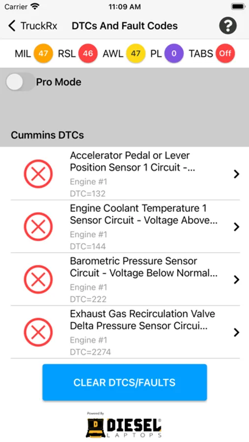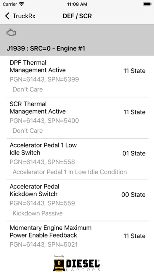 TruckRx is a vehicle and equipment diagnostics tool for reading Diagnostic Trouble Codes (DTCs), parameters, live data, and component information using the TRX-Link device from IDS (hardware required). The app can also clear DTCs and reset trip data. The TRX-Link with TruckRx app supports 3 CAN channels, SAE J1939, SAE J1708, and is capable of automatically determining vehicle protocols. TruckRx also allows the user to generate HTML reports that may be viewed, printed, or shared with others.