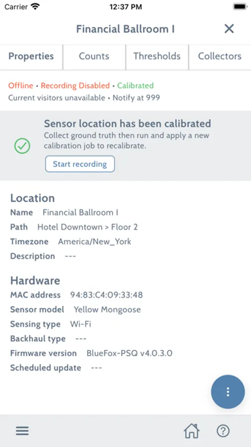 BlueZoo FTA is used to on-board new BlueZoo Wi-Fi sensors and to reconfigure sensors already deployed. The app is also used to collect “ground truth” to allow for the precise calibration of the sensor in its environment.