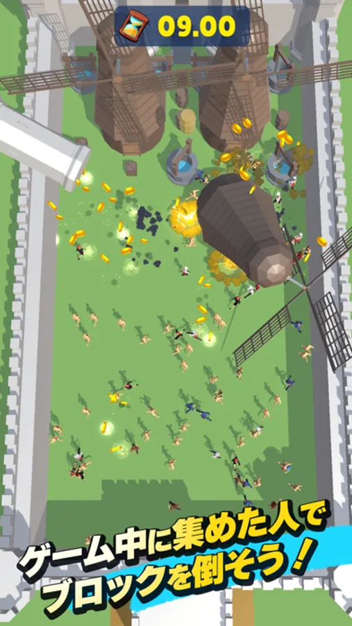 ・In the block breaking part, you decide the direction in which you want to send your characters flying and release them onto the field at once!
