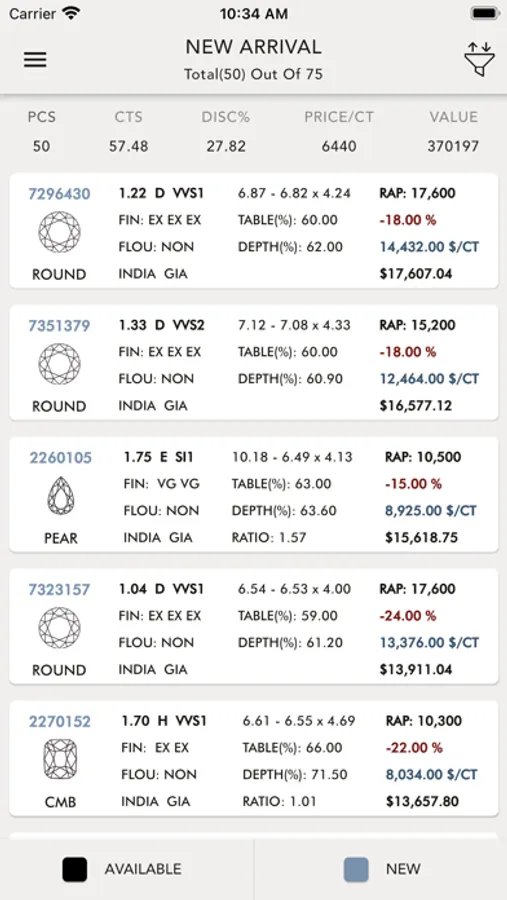 Download now, to get exclusive access to the best diamond deals. Browse, compare and buy a wide range of certified quality diamonds at the ease of your fingertips. Access an exclusive list of round and fancy shape diamonds at a discounted price. All diamonds are GIA, IGI or HRD certified. Enjoy this features: