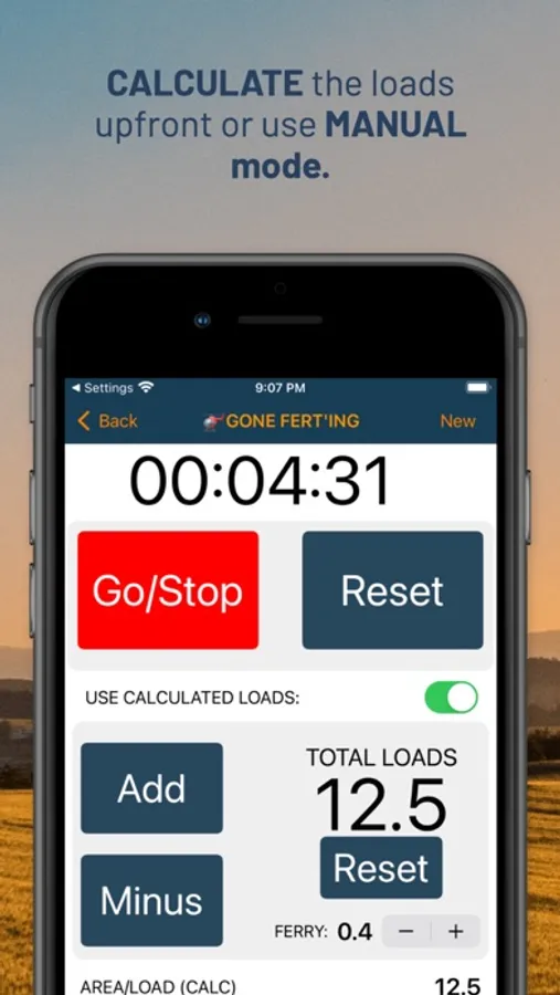 The application tracks your actual fertiliser application time with the highly visible, easy-to-use built-in stopwatch. Ferry time is also recorded giving an accurate total time result in the end of job report.