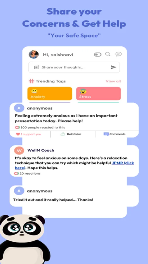 On WellM, you can be part of a community of your choice. We provide a safe space where you can express yourself freely (and anonymously if you like) and a chance for you to connect with others through our community feature, without feeling judged.