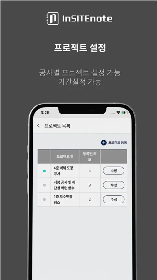 • 공사별 프로젝트 설정 가능