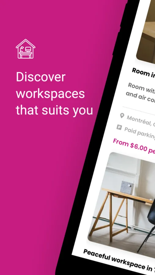 List directly your workspace from the Telework app and turn it into an extra income. While you fund your personal projects, you are providing a teleworker the opportunity to discover the charm and usefulness of your workspace – we call this a win-win.