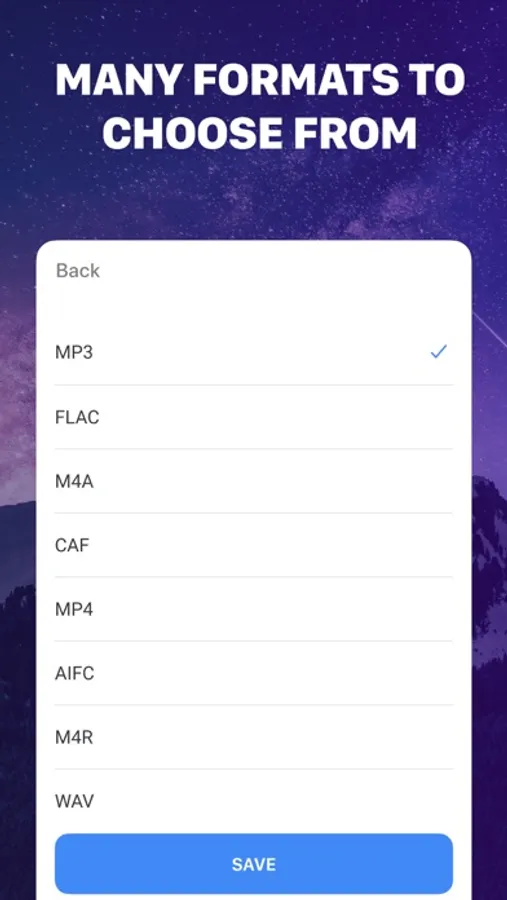 - Extensive list of formats - mp3, mp4, wav, flac, aiff, aac, m4a and others;