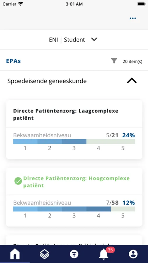 You always have your portfolio at hand with the ExpertFolio app. In the app you can use the most important functionalities of ExpertFolio that you use every day; you'll see EPA progress, forms can be uploaded, and it's super easy to create assessments.