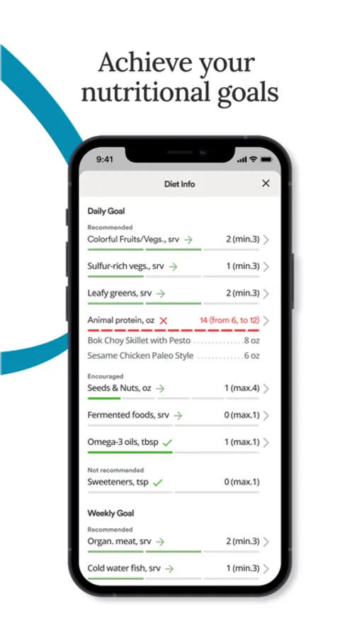 4. With just a glance, the Wahls Diet App lets you know if you are reaching your daily and weekly goals and if not suggests dishes that will help you reach them.