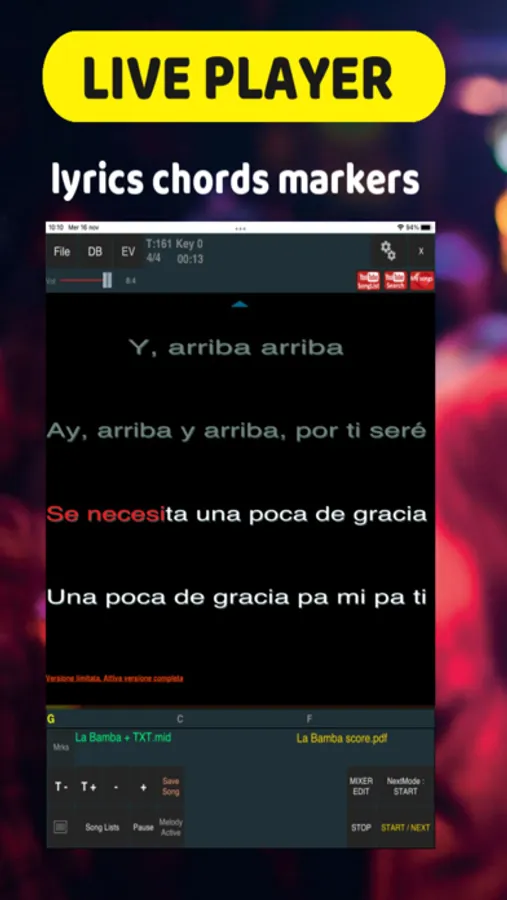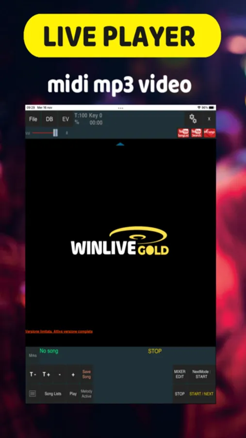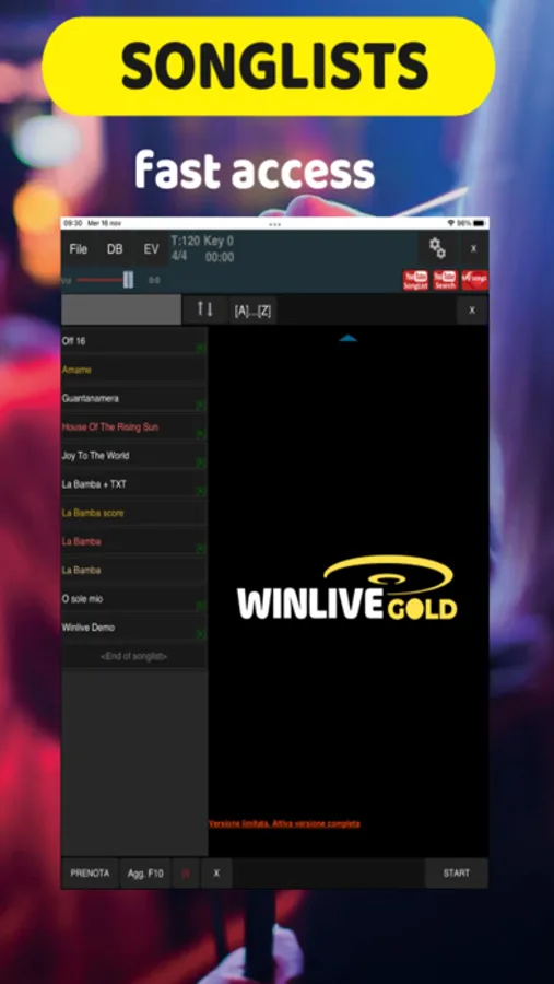 - Management of 40 SongLists with possibility to book next song or more song on a temp songlist ( F10 )