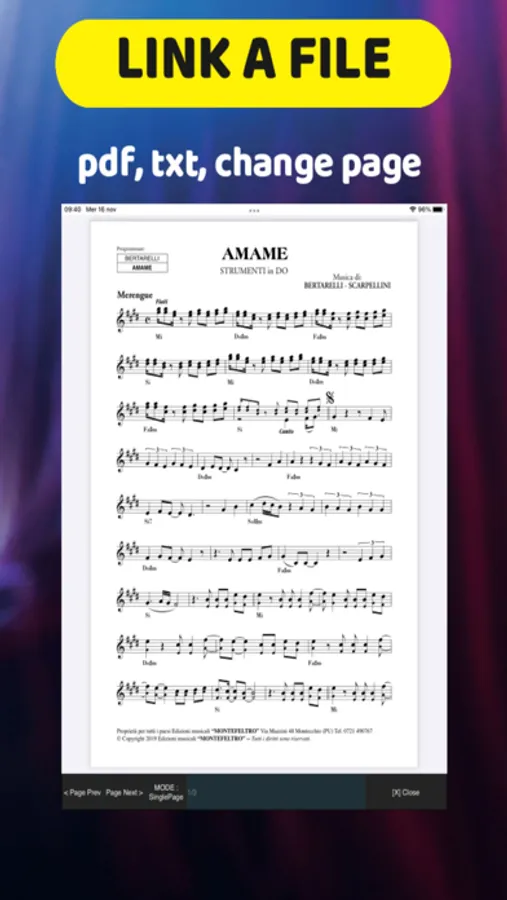 - You can link a .txt , a pdf or an image to your midi and mp3/audio files