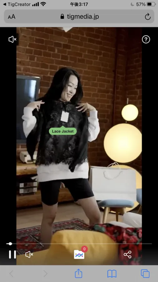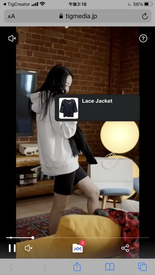 With Tig, you can stock pre-embedded information by simply touching (or ‘Tig-ing’) the relevant places in the video. Also, by touching the stocked items, you can get various information of, for example, the product, place, person, music, etc., from the linked pages.