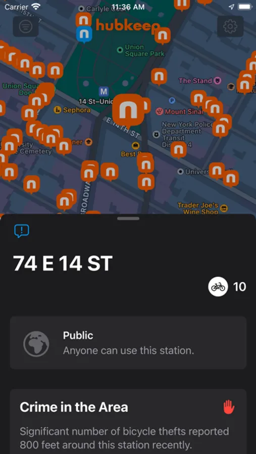Hubkeep helps you quickly find where to safely leave your bicycle or scooter in the city. We provide a constantly updated map of safe permanent bike racks so you don't have to waste time looking for parking. Quickly browse photos and see crime stats around the area to know what to expect. Look for additional features like rain protection or CCTV monitoring so your bike is dry and secure when you come back.