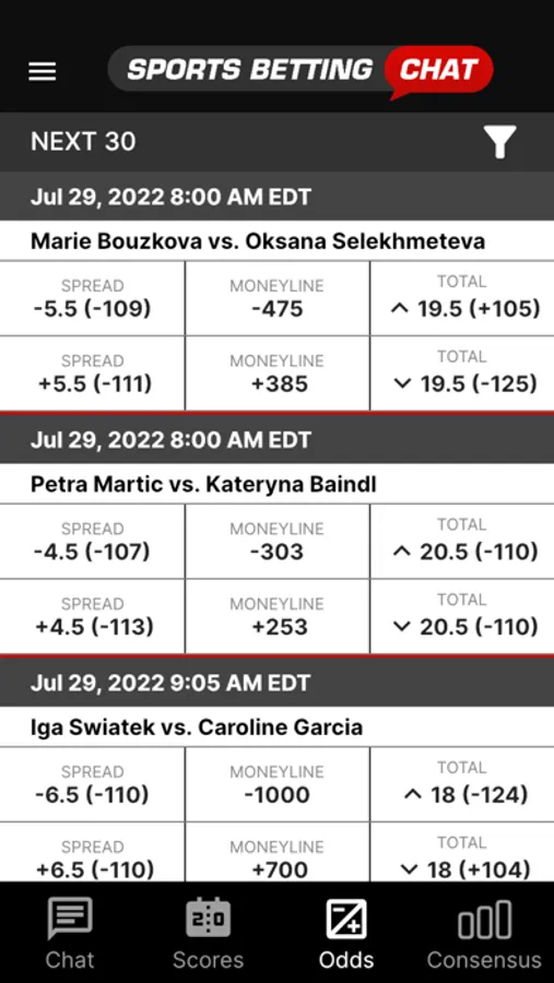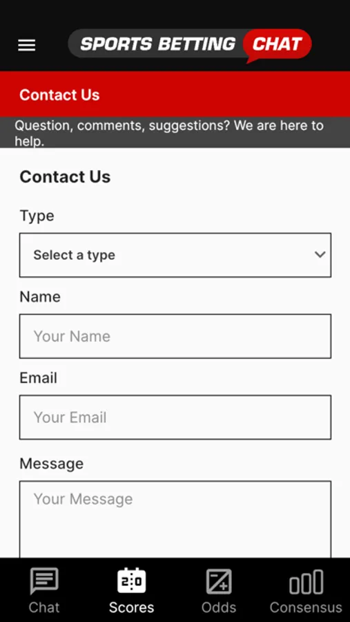 The purpose of SportsBettingChat is to provide helpful tools such as odds, scores and consensus and prediction information for the common sports bettor without the friction and at absolutely no cost. Our aim is the be as simple as possible. Provide clear and precise data that is easily viewable. We also provide a chat platform to share data and information with other members.