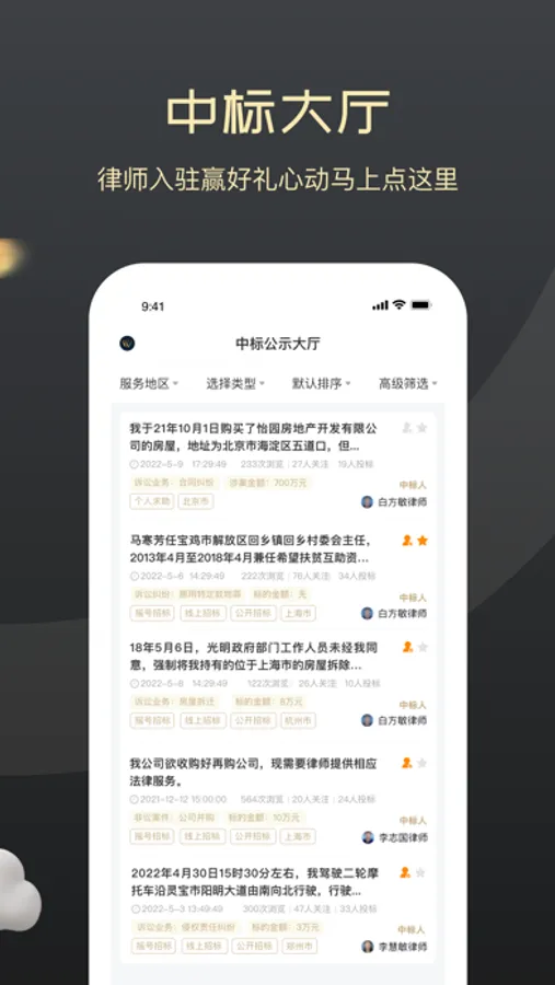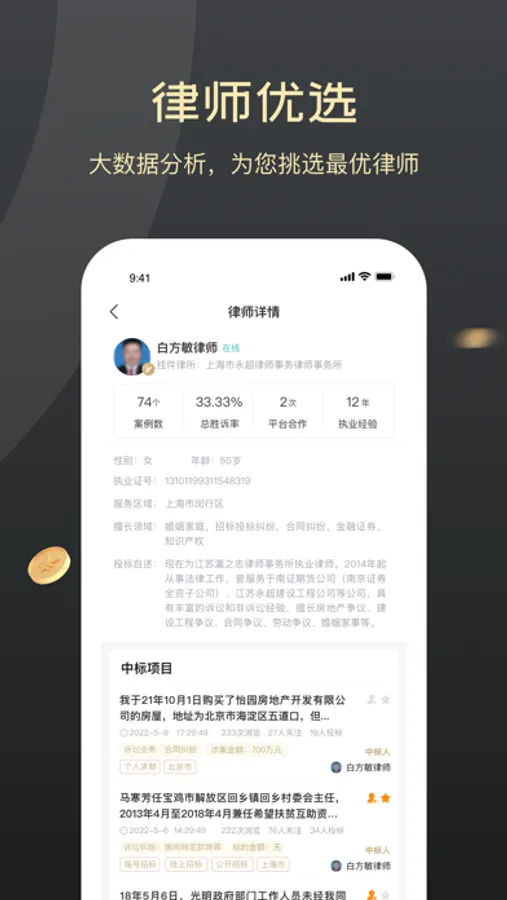 为个人用户挑选最优律师(海量律师、大数据分析)