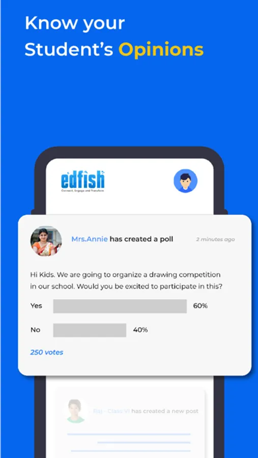Edfish School Talkz is an Engagement Platform for Students and Teachers to Share Their Thoughts, Achievements and Conduct Surveys on a Secured Platform.This is a Closed Community With Participation Only From Your School. Outside Users Are Restricted. Now Your Kid Has a Chance to Voice Out and Understand What His Peers Are Talking About.