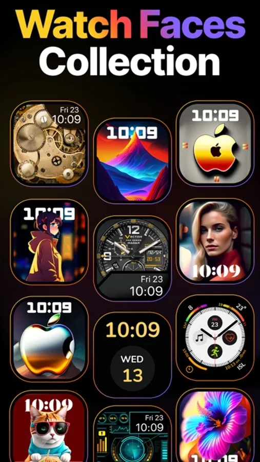 Get the collection of watch faces for your apple watch and liven up your wrist. Watch face app enables you to create and personalize your own watch face. Animated watch faces provide you the moving effect directly your watch. Variety of beautiful watch designs to fully customize your watch using watch face app. Decorate your smart watch with stunning collection of themes and background to amaze using exclusive watch faces. Watch face create tool brings the foremost personalization including the advanced customization adjustments to fully create your desired watch face.