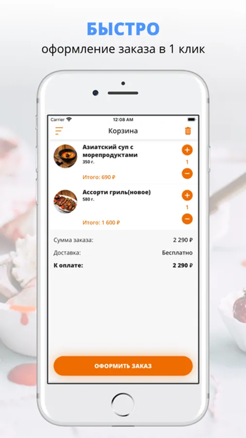 Скачивайте наше приложение, оформляйте заказ и наслаждайтесь любимой едой, где бы Вы ни были! Приятного аппетита!