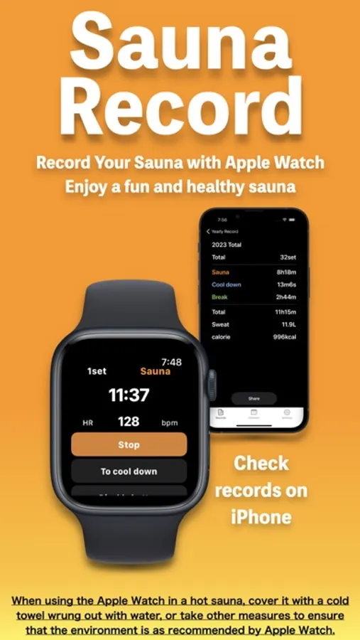 Please wear a non-metallic belt, cover the sauna with your hand, or apply a cold towel with water to prevent the AppleWatch from getting hot.